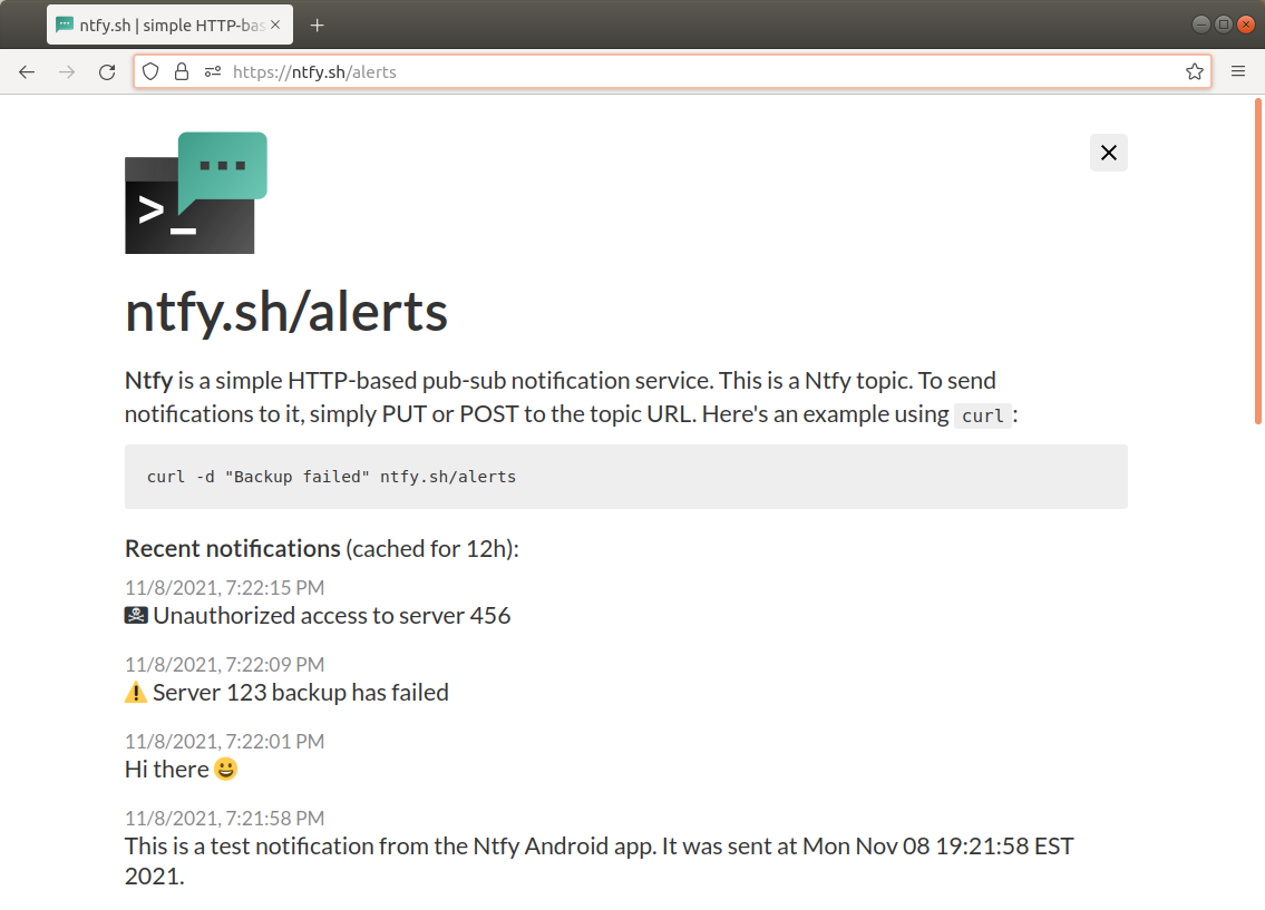 $ curl -s ntfy.sh/mytopic/raw